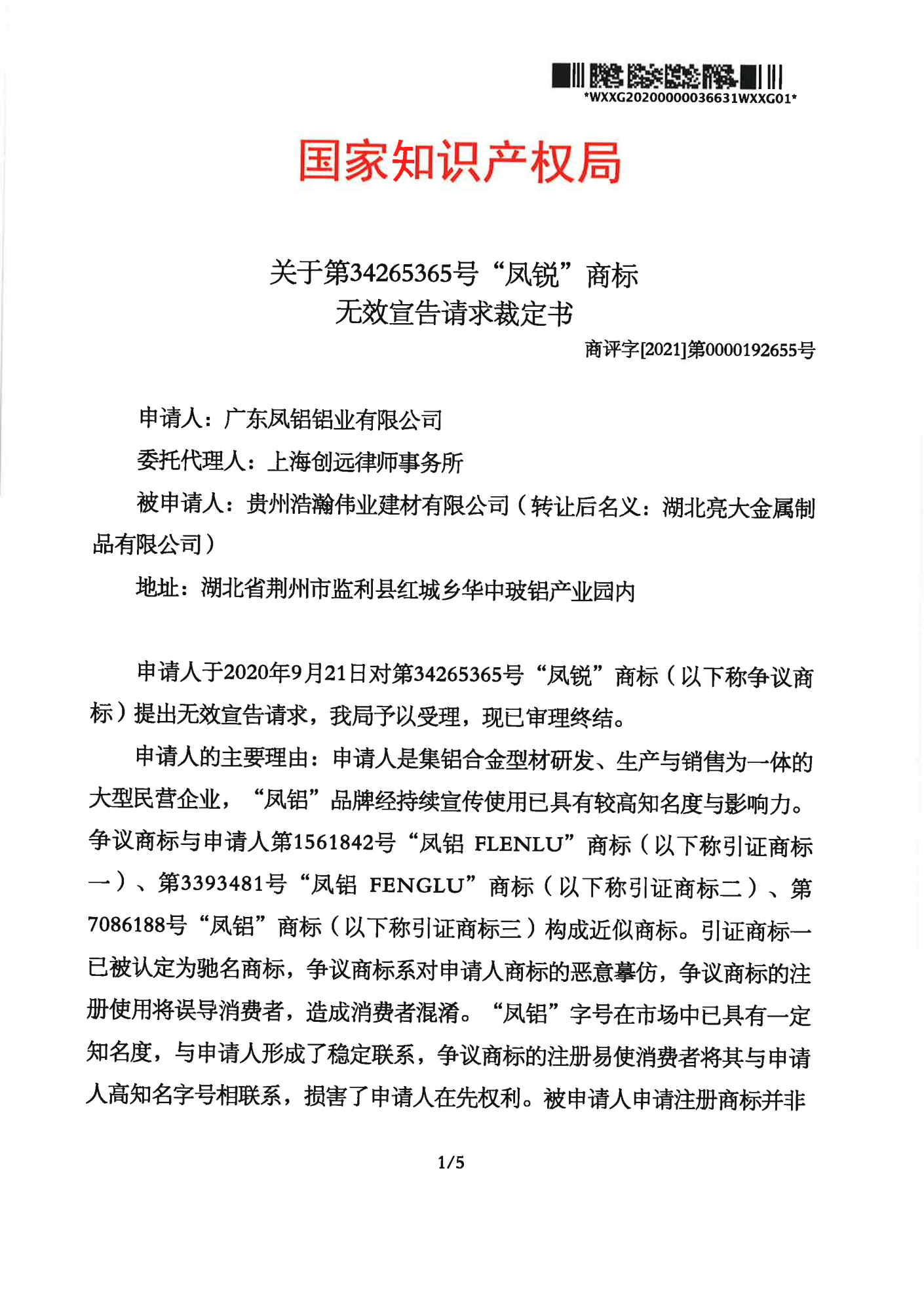齐齐哈尔辉知队 | 国家知识产权局:“凤锐”商标无效